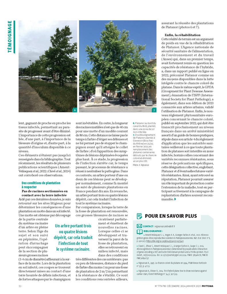 Nous sommes très fiers d’annoncer la publication d’un article consacré à Platanor® ‘Vallis Clausa’ dans le numéro de janvier 2025 de Phytoma, la revue de référence pour les professionnels de la santé du végétal.